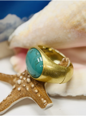 D’une longueur de 60 cm(chaînette d’aisance comprise), il se compose de six rangs délicats mêlant de petites pierres façon turquoise et de jolies perles fantaisie dorées.