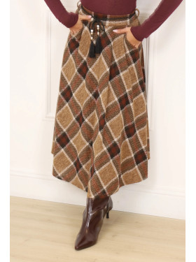 Cette jupe en maille signée René Derhy séduit par son imprimé à rayures dans des nuances bordeaux ou vertes, à la fois modernes et intemporelles.