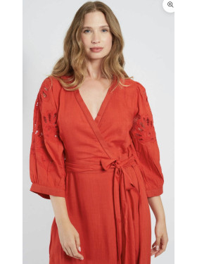 Entièrement boutonnée sur le devant, elle présente des manches retombantes sur le haut du bras pour un effet fluide et féminin.